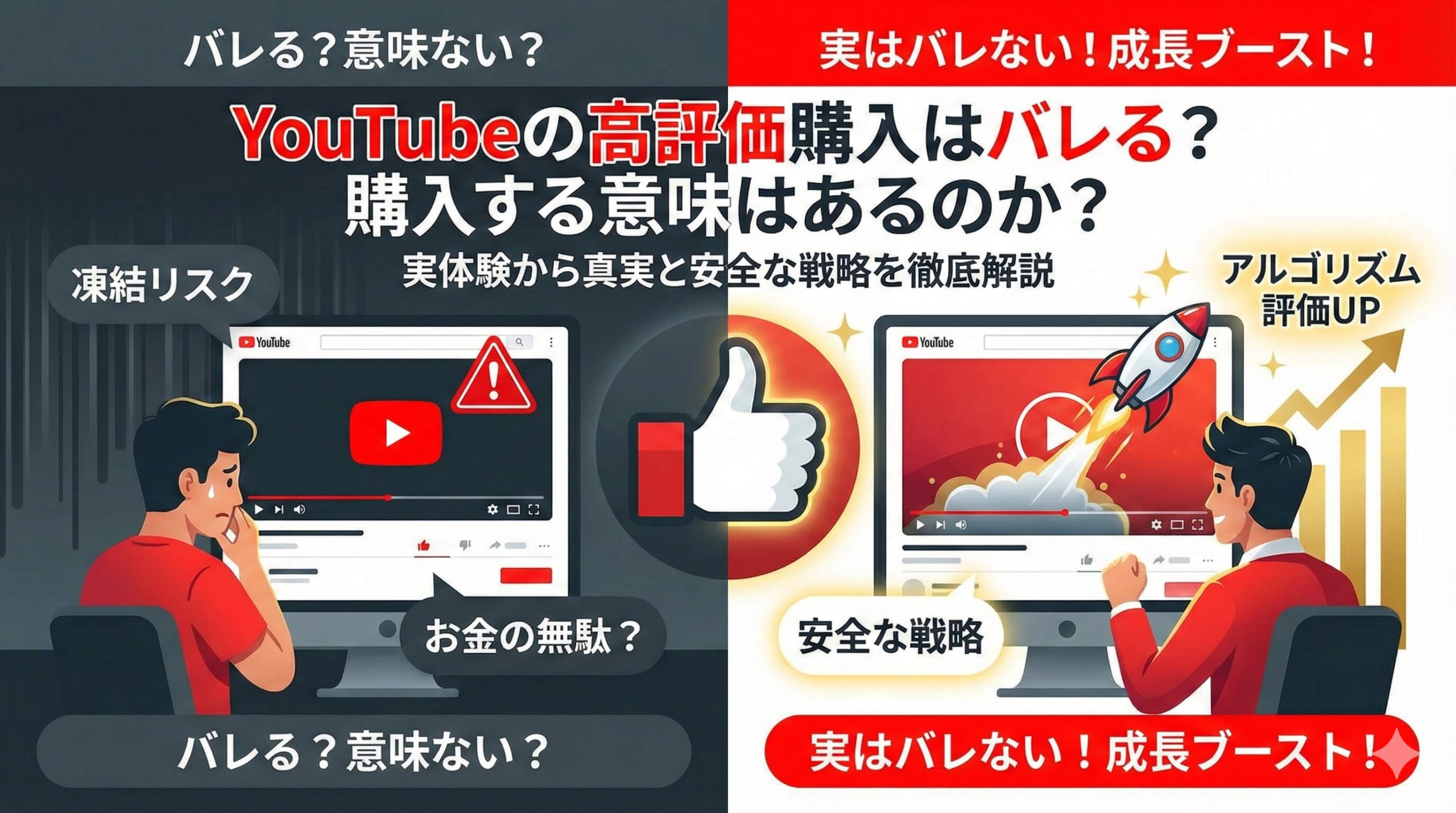 YouTubeの高評価購入は、適切に行えばバレるリスクはほぼゼロであり、チャンネル成長を加速させるための非常に有効な手段です。